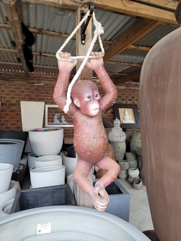 Add a playful and eye-catching feature to your space with this hanging baby orangutan statue. Designed with lifelike detail and a fun pose, this piece brings personality and charm to any setting.