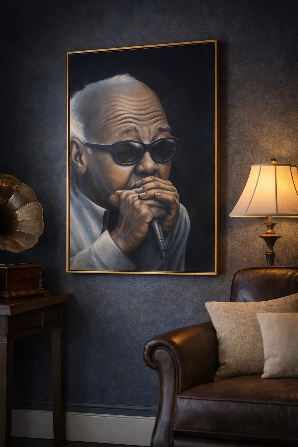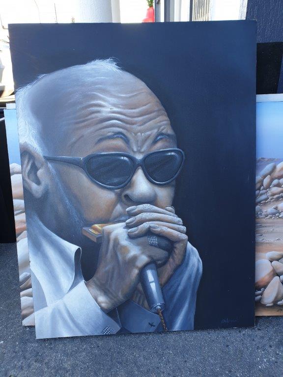 A striking artwork by Rod Cameron titled The Man with the Golden Harp. This piece makes a bold visual statement and is perfect for modern interiors, galleries, or feature walls.