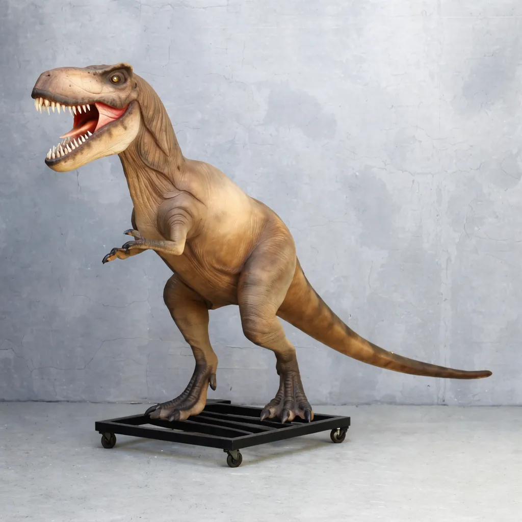 Add a powerful and eye-catching prehistoric feature to your space with this large T-Rex dinosaur prop statue. Designed with impressive detail and mounted on wheels for easy movement, this piece is both striking and practical for display.
