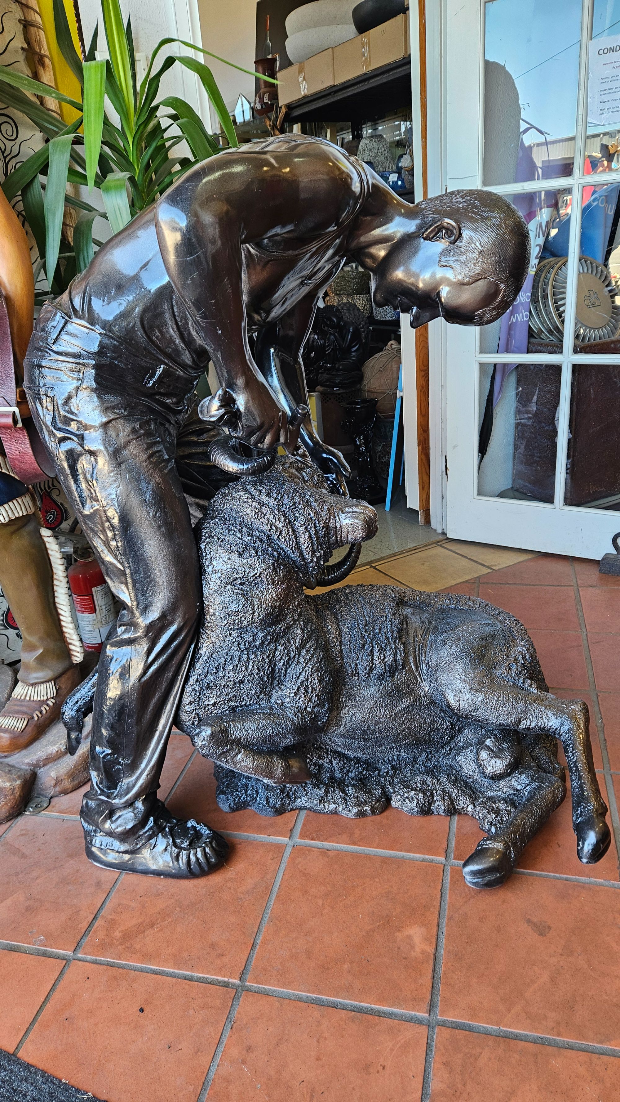 Add a strong and authentic rural Australian touch to your space with The Shearer fiberglass statue. Featuring a classic shearing scene, this piece captures character and tradition, making it a unique and meaningful display feature.
