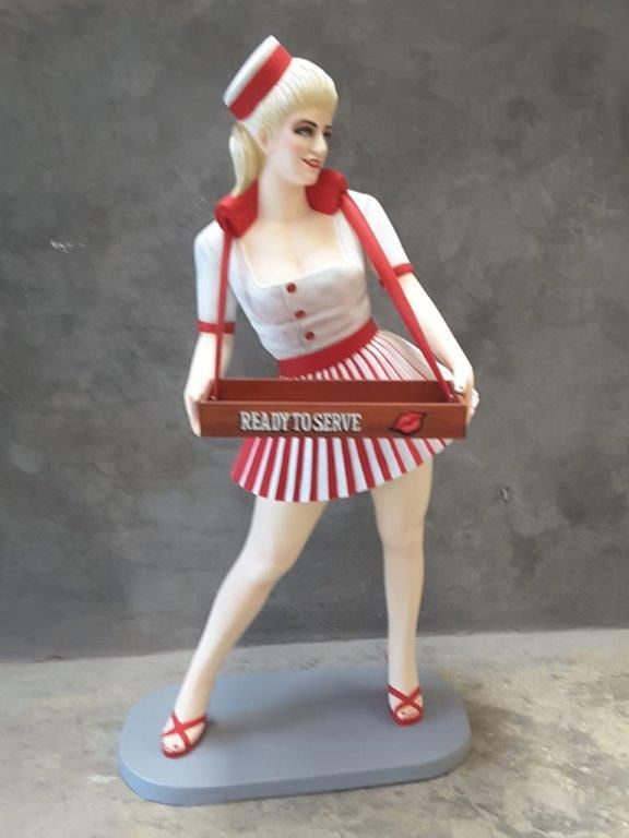 Add a classic cinema-inspired touch to your space with this usherette statue featuring a sales box. Designed with vintage charm and character, this piece is perfect for creating a nostalgic atmosphere.