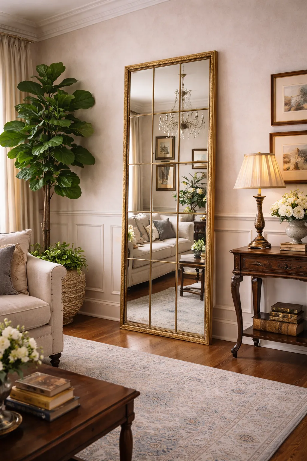 A stylish vintage mirror that adds character, elegance, and history to any interior space.
