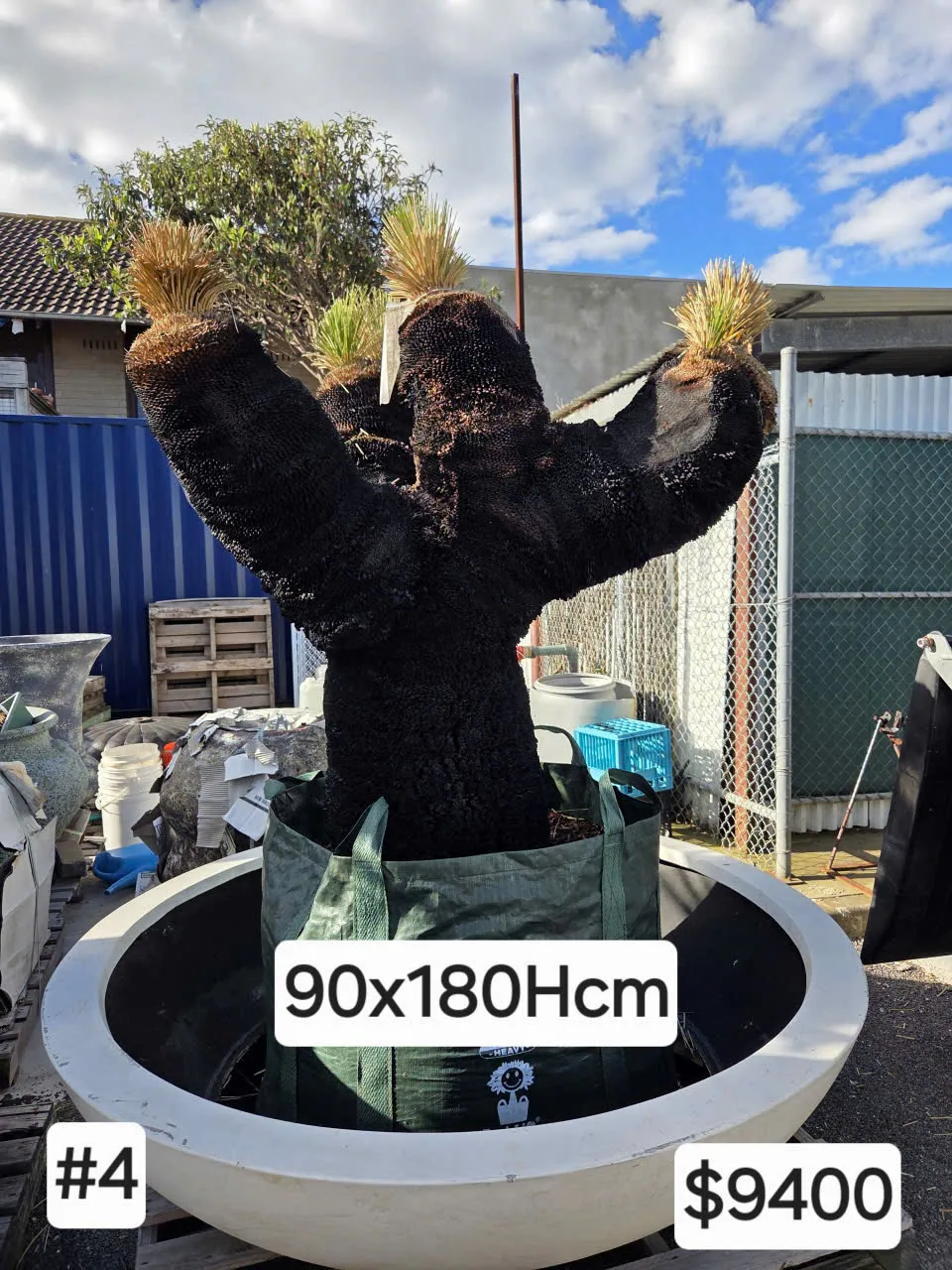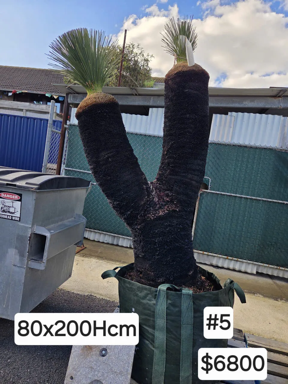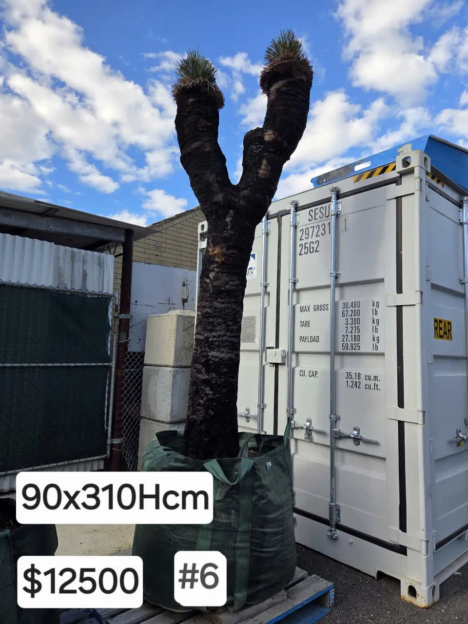 We have 5 x Xanthorrhoea (Balga black boy) trees, 220 to 280 years old plus 1 x dragon tree for sale as a bulk lot.