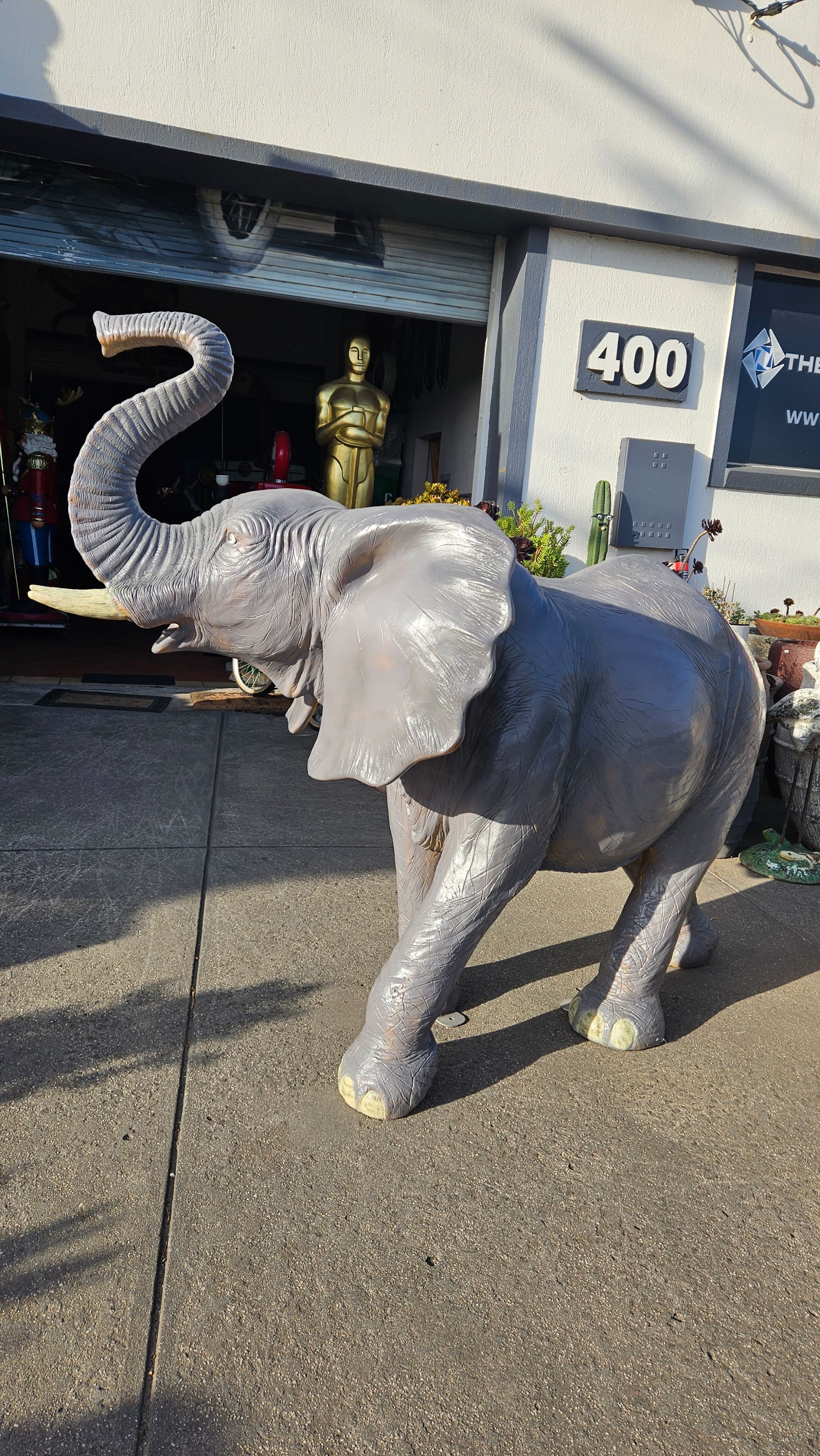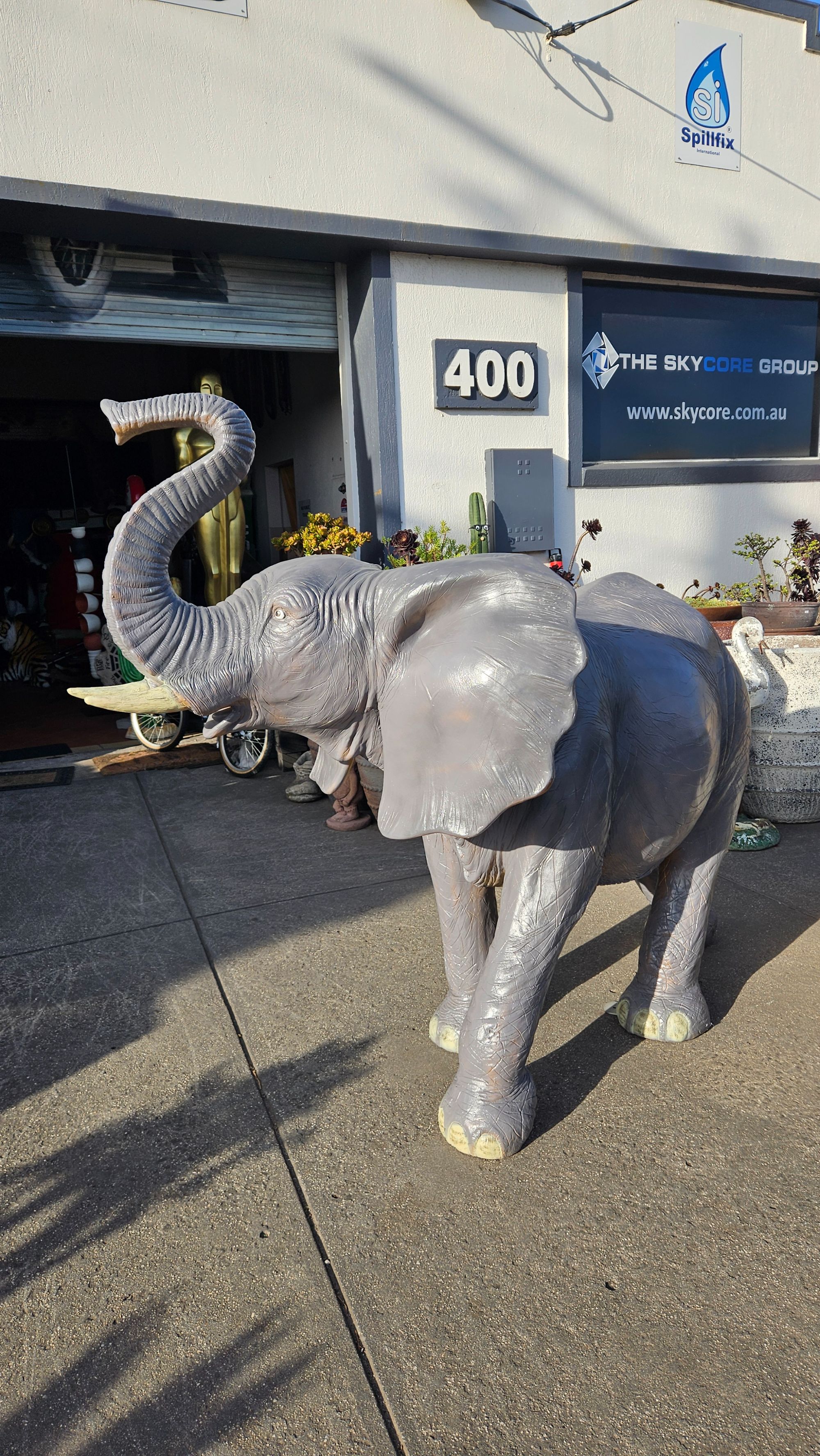 Add a majestic and impressive feature to your space with this large elephant fiberglass statue. Designed with strong presence and detailed craftsmanship, this piece creates a striking focal point in any setting.